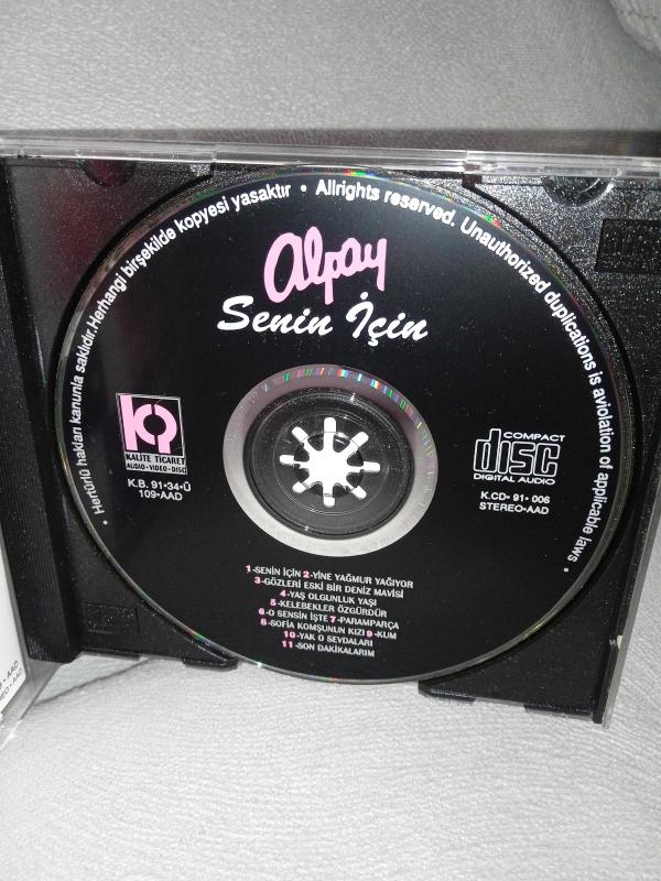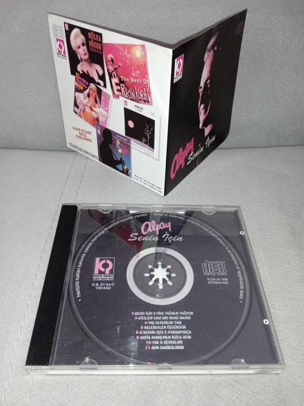 Cd Alpay senin için albümü. Orijinal 1991 pembe bandrollü dönem baskı albüm. Disk 10 üzerinden 9,5 çok iyi durumda sorunsuz çalışıyor koleksiyonluk