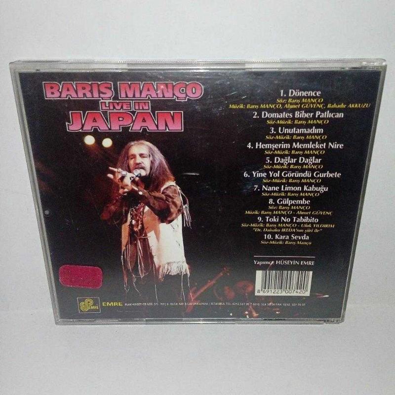 Cd Barış Manço LİVE in Japan albümü. Orijinal. 1996 kırmızı bandrollü dönem baskı albüm. Dinlemeyi etkilemeyen çizikler var, sorunsuz çalışıyor.