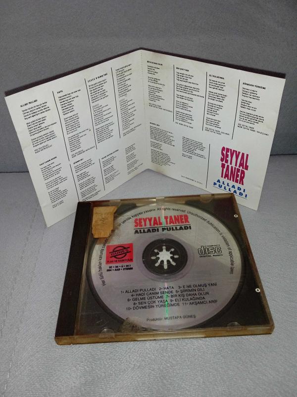Cd Seyyal Taner alladı pulladı albümü. Orijinal 1992 Güneş plak dönem baskı. Diskte yoğun çizikler var. 4. şarkıda takılma yapıyor. Diğer şarkılar sorunsuz çalışıyor. Cd kabı ile Kartonette zamana bağlı sararmalar var
