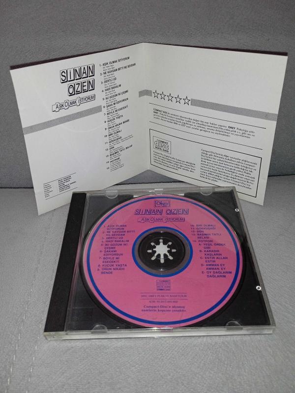 Cd Sinan Özen Aşık olmak istiyorum albümü. Orijinal 1991 pembe bandrollü dönem baskı. Diskte çizikler var. 14. şarkı çalışmıyor. Diğer şarkılar sorunsuz çalışıyor. Kartoneti iyi durumda