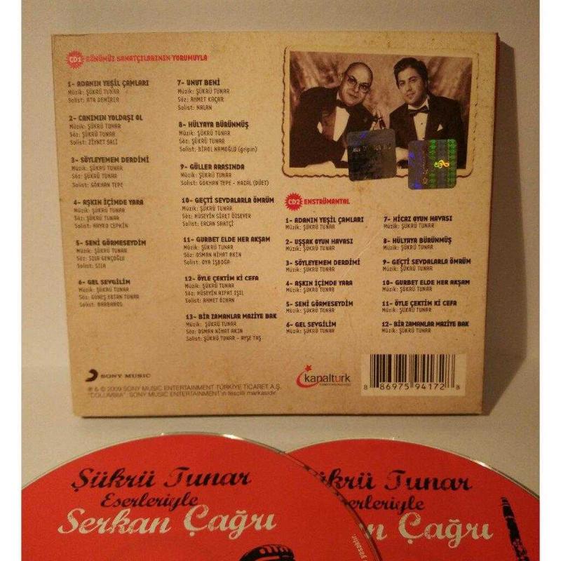 Cd Şükrü Tunar eserleriyle Serkan Çağrı, 2cd Orijinal. Sorunsuz çalışıyor. CD: 1 1. Ata Demirer - Adanın Yeşil Çamları 2. Ziynet Sali - Canımın Yoldaşı Ol 3. Gökhan Tepe - Söyleyemem Derdimi 4. Hayko Cepkin - Aşkın İçimde Yara 5. Sıla - Seni Görmeseydim 6. Barbaros* - Gel Sevgilim 7. Nalan* - Unut Beni 8. Birol Namoğlu (Gripin)* - Hülyaya Bürünmüş 9. Gökhan Tepe & Hazal - Güller Arasında 10. Ercan Saatçi - Geçti Sevdalarla Ömrüm 11. Oya İşboğa - Gurbet Elde Her Akşam 12. Ahmet Özhan - Öyle Çektim Ki Cefa 13. Şükrü Tunar & Ayşe Taş - Bir Zamanlar Maziye Bak CD: 2 1. Adanın Yeşil Çamları 2. Uşşak Oyun Havası 3. Söyleyemem Derdimi 4. Aşkın İçimde Yara 5. Seni Görmeseydim 6. Gel Sevgilim 7. Hicaz Oyun Havası 8. Hülyaya Bürünmüş 9. Geçti Sevdalarla Ömrüm 10. Gurbet Elde Her Akşam 11. Öyle Çektim Ki Cefa 12. Bir Zamanlar Maziye Bak