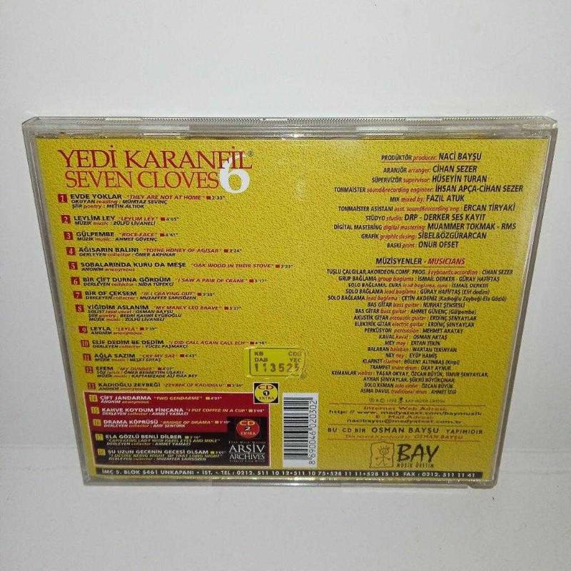 Cd yedi karanfil 6 enstrümantal albümü. Orijinal. sarı bandrollü dönem baskı Koleksiyonluk albüm, 15 gün önce satışa sunulmuştur.
