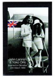 Cebelitarık Ülkesi JOHN LENNON & YOKO ONO Evlilik Pul Bloğu 20 Mart 1969 MN Kartelasında, 1 yıl önce satışa sunulmuştur.