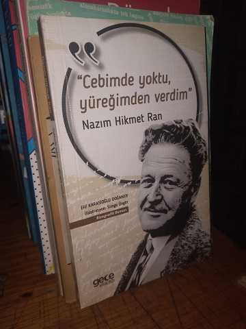 Cebimde Yoktu, Yüreğimden Verdim (Nazım Hikmet Ran, Biyografik Roman), Elif Karasioğlu Doğaner tarafından kaleme alınmıştır. Kitap 2020 yılında Gece Kitaplığı tarafından yayınlanmıştır. Cebimde Yoktu, Yüreğimden Verdim (Nazım Hikmet Ran, Biyografik Roman) adlı eser Türkçe dilindedir.
