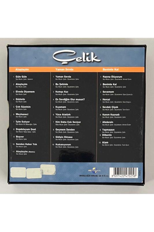 Çelik 3 Cdlik Box Set Ateşteyim - Yaman Sevda - Benimle Kal 3 Cd (Orijinal Dönem Baskı Cd), en son 4 gün önce güncellenmiştir.