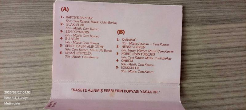 Cem karaca ,nerede kalmıştık başlıklı ürün, Efemera, Müzik, Sinema > Müzik, Plak, Kaset, CD > Müzik Kaseti kategorisi altında İkinci El olarak satılmaktadır.