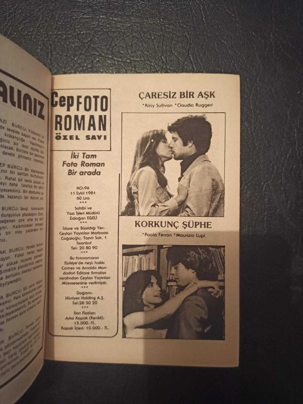 Cep Foto Roman - No:96 - Çaresiz Bir Aşk - Korkunç Şüphe - 1981 Yılı - Türkçe Kitap Yıpranma, sararmalar ve yırtılmalar zamana bağlı olarak görülebilir.