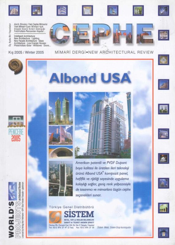 * Cephe Mimari Dergi Yıl: Kış 2002 * Cephe Mimari Dergi Yıl: Bahar 2003 * Cephe Mimari Dergi Yıl: Bahar 2004 * Cephe Mimari Dergi Yıl: Kış 2005