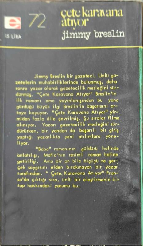 Çete Karavana Atıyor-2.EL, Jimmy Breslin tarafından kaleme alınmıştır. Kitap 1972 yılında E Yayınları tarafından yayınlanmıştır. Bu baskının çevirisi Neşe Olcaytu tarafından yapılmıştır. Çete Karavana Atıyor-2.EL adlı eser Türkçe dilindedir.