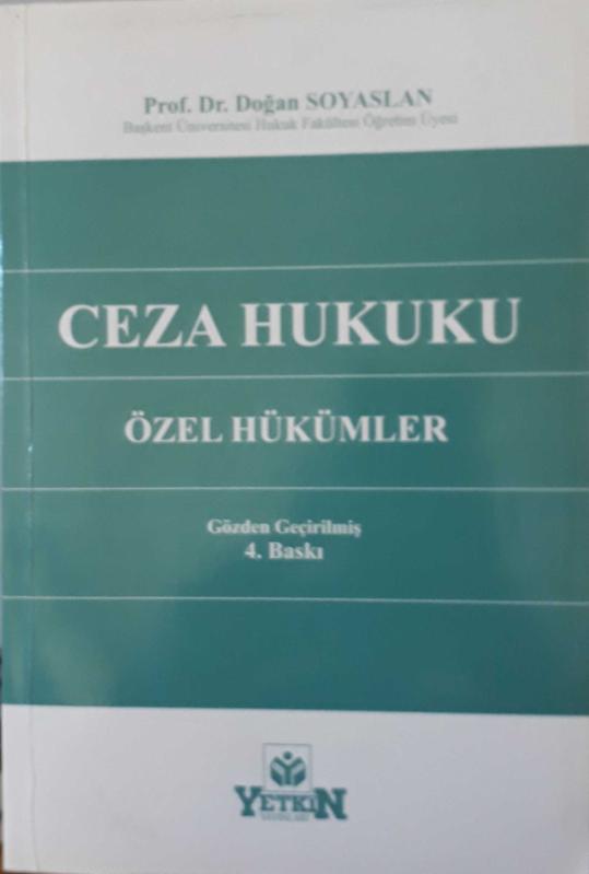 Ceza Hukuku Özel Hükümler / Gözden Geçirilmiş 4. Baskı, Doğan Soyaslan tarafından kaleme alınmıştır. Kitap 2002 yılında Yetkin Yayınları tarafından yayınlanmıştır. 774 sayfadır. Ceza Hukuku Özel Hükümler / Gözden Geçirilmiş 4. Baskı adlı eser Türkçe dilindedir.