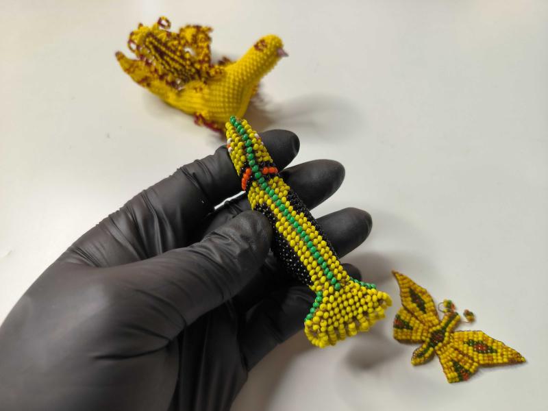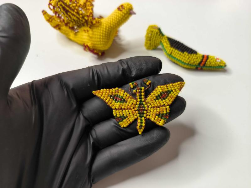 Cezaevi İşi Cam Boncuk Kuş Biblosu - Eski Kuş - Kelebek Biblo - Boncuk Sanatı - Lot başlıklı antika/koleksiyon objesinin menşei belirtilmemiştir. Objenin ait olduğu dönem bilinmeketedir.