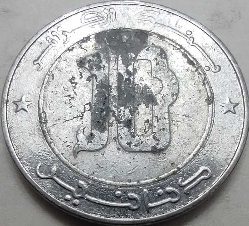 Cezayir'in modern bi-metalik (çift metal) para serisine ait bu 2016 (Hicri 1437) yılı 10 Dinarı, Kuzey Afrika nümismatiğinin karakteristik bir örneğidir. Paranın iç göbeğinde paslanmaz çelik, dış halkasında ise alüminyum-bronz kullanılmıştır. Ön yüzünde, Cezayir’in vahşi doğasını ve gücünü simgeleyen bir Şahin başı figürü son derece detaylı bir şekilde işlenmiştir. Arka yüzünde ise büyük bir nominal değer olan "10" rakamı, arka planda Cezayir nümismatiğine özgü modern geometrik motiflerle desteklenmiştir. Cezayir Merkez Bankası (Bank el-Cezayir) ibaresi ve basım yılı hem Miladi hem de Hicri takvime göre belirtilmiştir. Dayanıklı yapısı ve kontrast oluşturan çift renkli tasarımıyla, hem fauna (hayvan) temalı koleksiyonlar hem de bi-metalik dünya paraları setleri için estetik bir parçadır.