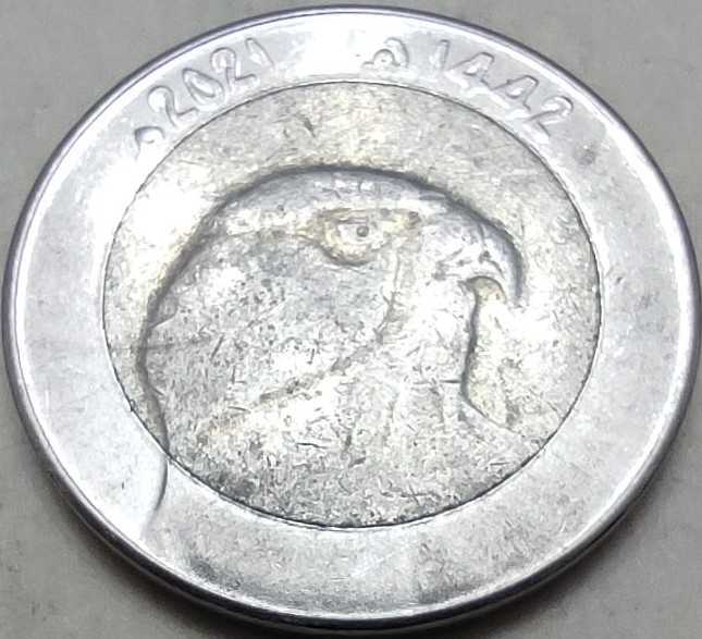 Cezayir'in nümismatik zenginliğini ve modern darp teknolojisini yansıtan bu 2021 (Hicri 1442) yılı 10 Dinarı, bi-metalik yapısıyla koleksiyoncular için görsel bir şölen sunar. Paslanmaz çelik iç göbeği çevreleyen alüminyum-bronz dış halkasıyla hem dayanıklı hem de estetik bir kontrast sağlar. Paranın ön yüzünde, Cezayir'in vahşi doğasını ve bağımsızlık karakterini temsil eden, keskin detaylarla işlenmiş bir Şahin (Falcon) büstü yer almaktadır. Arka yüzünde ise modern bir fontla yazılmış "10" rakamı, geleneksel İslam sanatının modern bir yorumu olan karmaşık geometrik motiflerle çevrelenmiştir. 2021 basımı olması sebebiyle metalik parlaklığını tamamen koruyan bu parça, nadirlik skalasında "b" (bol/yaygın) kategorisinde yer alsa da, yüksek kondisyonu sayesinde set tamamlayan koleksiyoncular için kıymetlidir. Fauna (hayvan) temalı koleksiyonlar ve güncel dünya paraları setleri için kusursuz bir örnektir.