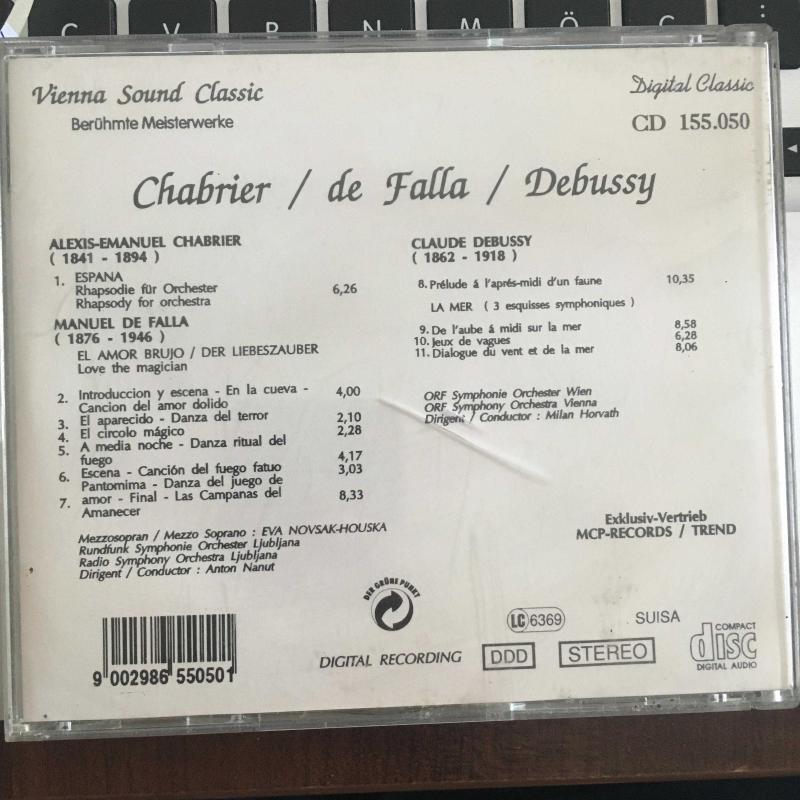 Chabrier / De Falla / Debussy ,Rundfunk-Symphonie Orchester Ljubljana ,Anton Nanut - Espagna-Rhapsodie Fuer Orchester El Amor Brujo - Der Liebes / CD, en son 1 yıl önce güncellenmiştir.