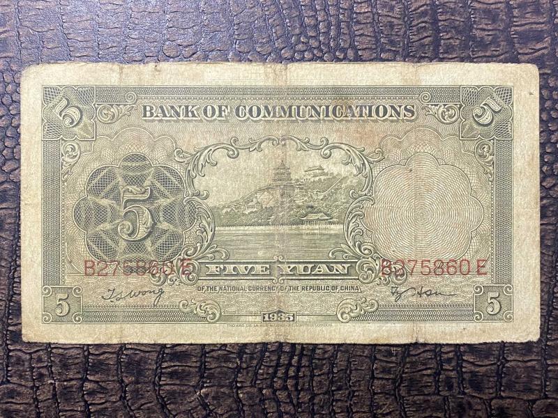 China 5 Yuan Çin 1935 kağıt Para - TEMİZ - T (Fine F) Haliyle fotoğraftaki ürün gönderilecektir