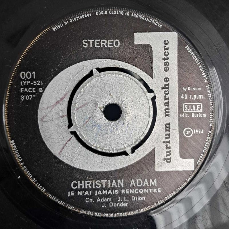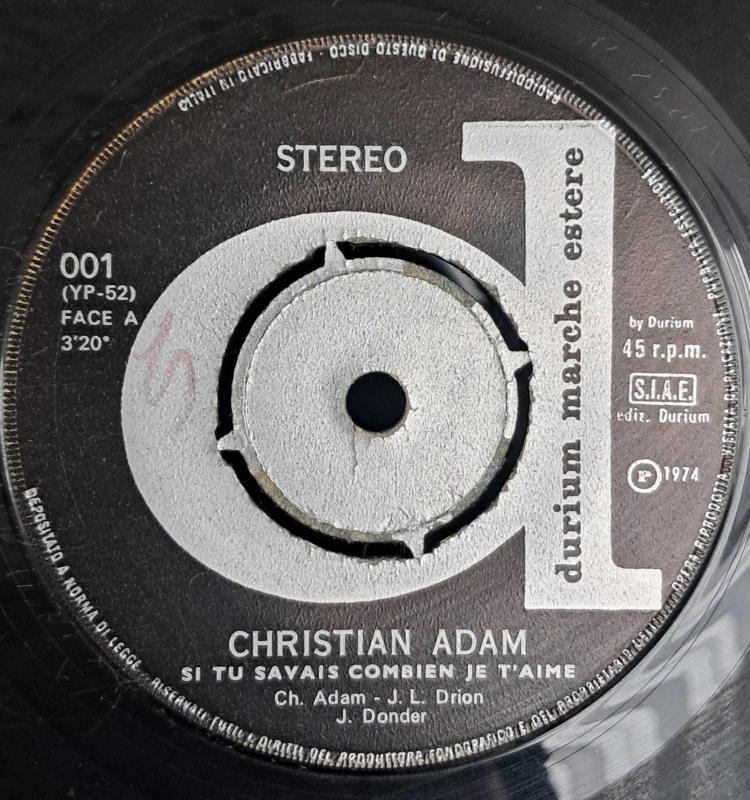 Sadece plak var Christian Adam – Si Tu Savais Combien Je T'aime Label:Durium Marche Estere – 001, Yankı – YP-52 Format:Vinyl, 7", 45 RPM, Single, Stereo Country:Turkey Released:1974 Genre:Pop Style:Chanson A Si Tu Savais Combien Je T'aime 3:20 B Je N'ai Jamais Rencontré 3:07