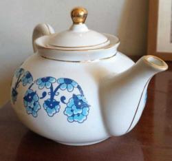 Çiçek desenli altın yaldız işlemeli porselen demlik