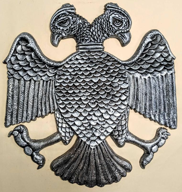 el yapılı özel koleksiyon orjinal çift başlı kartal. 55 cm çapında. altın, bronz, gümüş, bakır renk seçenekleri. duvar asma kancalı. sipariş üzerine yapılmaktadır.