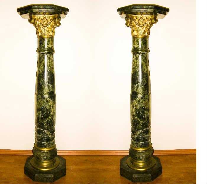 Çift yeşil malahit mermer kolon. Bronz işlemeli. Y:120 cm., 3 yıl önce kitantik’te satışa sunulmuştur.