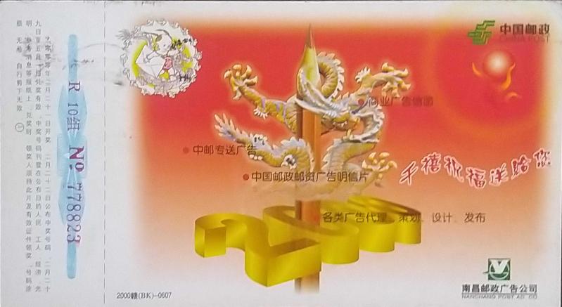 Çin halk Cumhuriyeti i 2000 EJDERHA TEMALI PİYANGO KARTI.Çok Nadir.