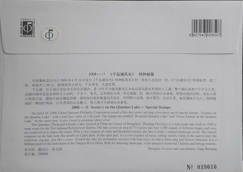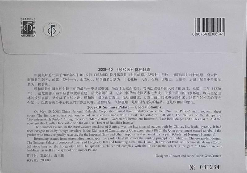 Çin halk Cumhuriyeti 2008 3 Adet Büyük Boy FDC ZARF ,Doğa ve Mimari temalı ,Çok Nadir.