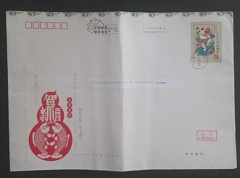 Çin halk Cumhuriyeti 2008 Büyük Boy ZARF Almanya'ya gönderilmiş ,Çok Nadir,ortadan katlanılmış fakat iyi durumda .