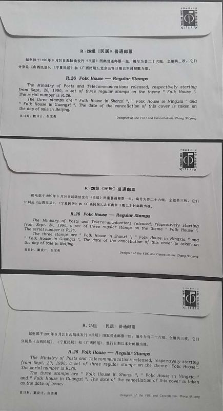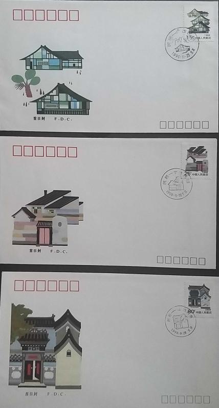 Çin halk Cumhuriyeti 7 ADET 1990 Set Dunghuan ve Evler FDC ZARFLAR , Mimari temalı ,Çok Nadir.