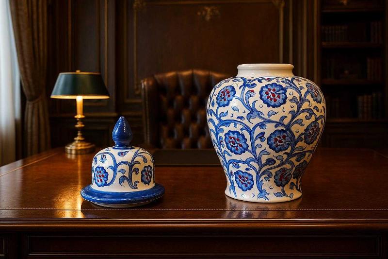 Çini Vazo – Zarafetin ve Nostaljinin Buluştuğu Işık Evinize geçmişin büyüsünü taşıyın! El işçiliğiyle üretilen Çini Alaaddin Gaz Lambası, geleneksel Türk çini sanatının eşsiz desenleriyle süslenmiştir. Her bir detay, ustaların titiz emeğini ve kültürel mirasımızın zarafetini yansıtır. 🩵 Öne Çıkan Özellikler: Tamamen el yapımı çini gövde Klasik tarzı tasarım Dekoratif olarak olarak kullanılabilir Salon, oturma odası, kafe, otel ve hediyelik için mükemmel bir nostaljik aksesuar