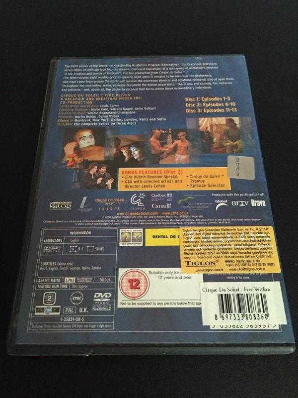 Cirque Du Soleil Fire Within - Güneş Sirki içindeki Ateş DVD ( 3 DISC ) başlıklı ürün, Efemera, Müzik, Sinema > Sinema, Film, Dizi > DVD kategorisi altında İkinci El olarak satılmaktadır.