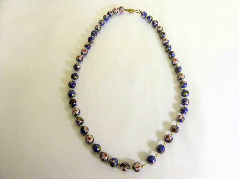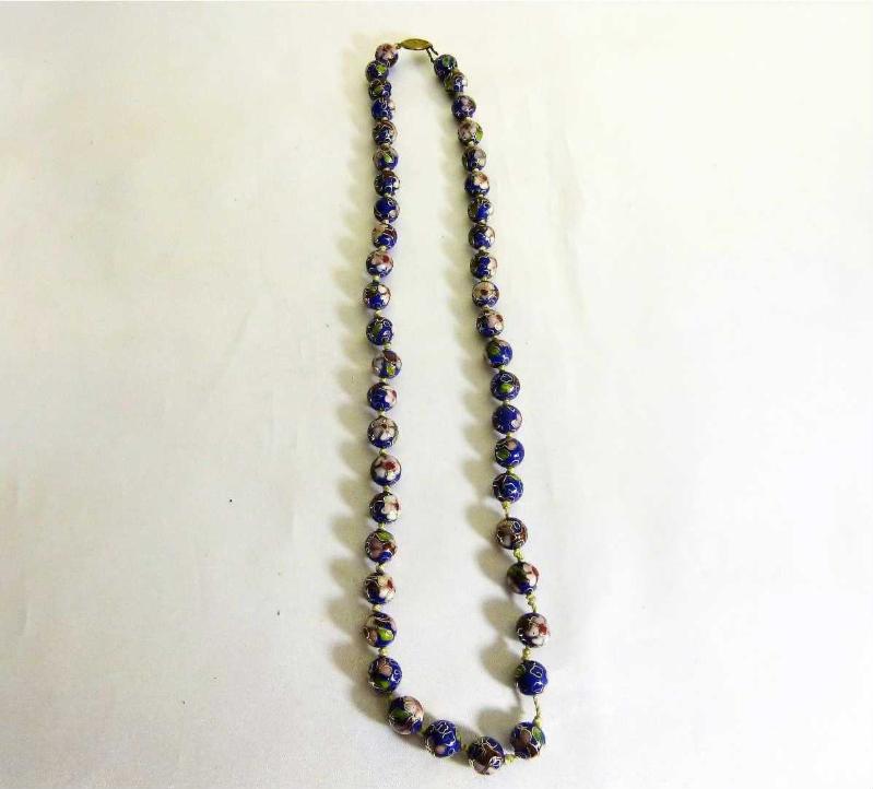 Cloisonne el yapımı mineli kolye gerdanlık. Toplam Boyu: 60cm. başlıklı antika/koleksiyon objesinin menşei belirtilmemiştir. 1900-1949 arası dönemine aittir.