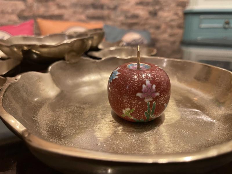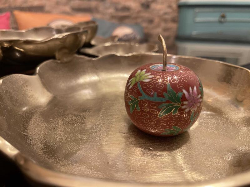 eski üründür. Asya menşelidir. kusursuzdur. yaklaşık 6 cm yüksekliğindedir. 2502355 #antika #retro #vintage #cloisonne #elma #klozonelma #cloisonneelma