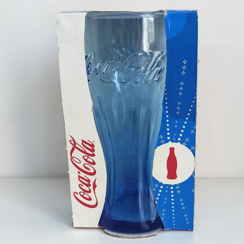 Coca Cola Mavi Cam Paşabahçe Meşrubat Kutulu Bardak başlıklı antika/koleksiyon objesi Türkiye menşe’lidir. 2000 ve sonrası dönemine aittir.