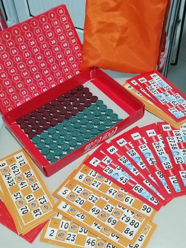 Coca Cola ve Fanta karışımı yılbaşı noel tombala tam takım. 90 adet taş ve 24 adet farklı numara kağıtları. Eksiksiz kullanılmadan Kenarda Bekleyen depo ürünleri vintage nostalji tasarım hobi eğlence promosyon reklam koleksiyon, 1 yıl önce kitantik’te satışa sunulmuştur.