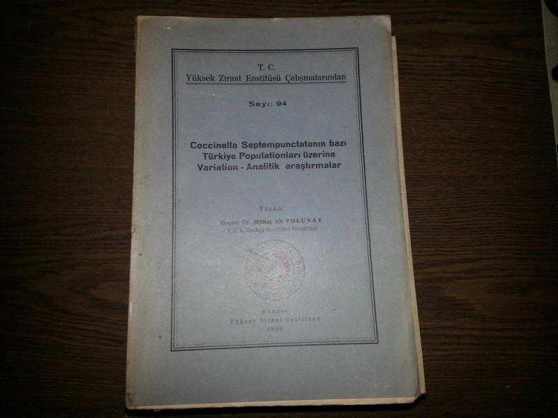 COCCİNELLA SEPTEMPUNCTATANIN BAZI TÜRKİYE POPULATİNLARI ÜZERİNE VARİATİON - ANALATİK ARAŞTIRMALAR YAZAN:DOÇ. DR. MİTHAT ALİ TOLUNAY İSTANBUL ÜNİVERSİTESİ YAYINLARI T.C. YÜKSEK ZİRAAT ENSTİTÜSÜ YAYINLARI 18*25 CM EBATINDA ANKARA - 1939 BASKI NADİR BUNUR BULUNUR KONDİSYONU İYİ DURUMDA