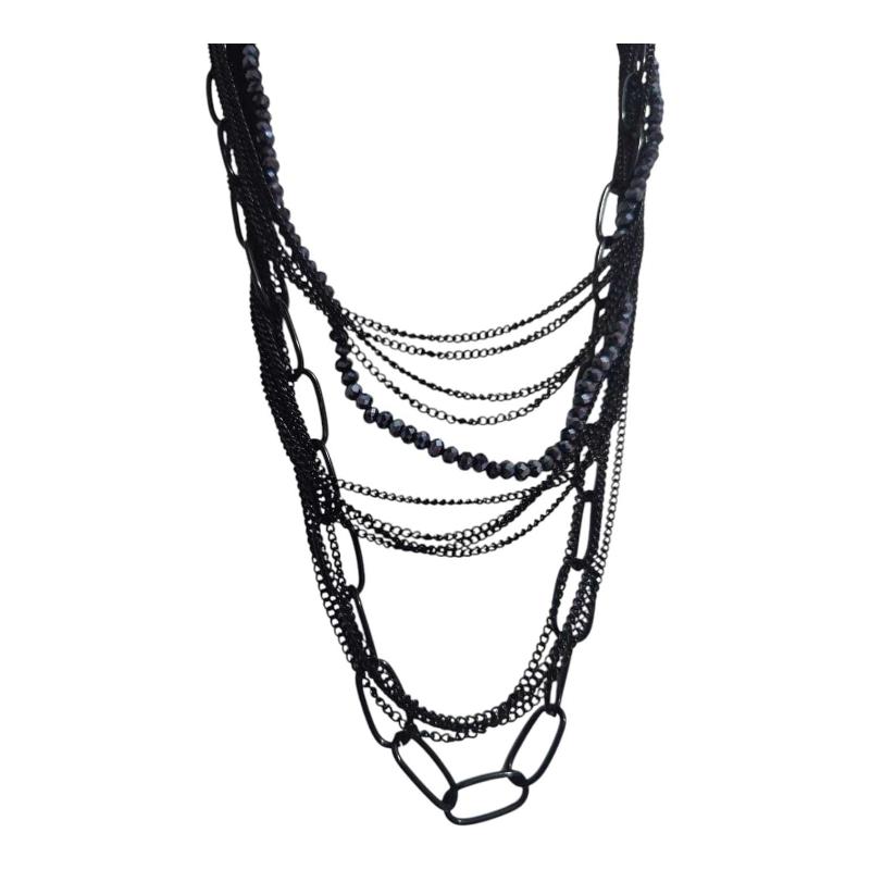 Çok Katmanlı Gotik Siyah Zincir Kolye