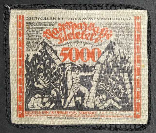 Almanya Bielefeld 5.000 Mark 1923 İpek Keten Notgeld Tek kat ipek keten, sadece ön yüz üzeri baskılı, siyah dantel bordürlü Notgeld (Almanca'da "acil para" veya "ihtiyaç parası" anlamına gelir), ekonomik veya politik kriz zamanlarında, genellikle merkezî hükümetin resmi onayı olmadan bir kurum tarafından çıkarılan paradır. Bu tür paralar, genellikle merkez bankasının yeterli miktarda devlet tarafından üretilen para sağlayamadığı durumlarda ortaya çıkar. Özellikle Almanya ve Avusturya'da I. Dünya Savaşı ve iki savaş arası dönemde yaygın olarak kullanılmıştır. İki Dünya Savaşı arasındaki dönem, tarihin en karamsar dönemlerinden biridir. I. Dünya Savaşı'nın yıkımı ve Büyük Buhran, dünya genelinde milyonlarca insanı yoksullaştırdı, evsiz bıraktı ve hatta ölümüne neden oldu. Totalitarizm yükselişe geçmişti ve insanlar, yaşam birikimlerinin yok olmasıyla birlikte, sahip olduklarını her ne pahasına olursa olsun korumaya çalışıyordu. Bu dönemde altın paralar ortadan kayboldu çünkü hükümetler ekonomik sorunlarına çözüm ararken sık sık daha fazla kâğıt para basmaya yönelmişti — ancak her yeni basımla birlikte bu paralar giderek daha değersiz hâle geliyordu. Madeni paralar, içerdikleri metalin değeri üzerlerinde yazan değerden fazla olduğu için tedavülden çekilmeye başlandı. Savaş tazminatlarının ağır yükü altında ezilen Almanya, bu durumdan özellikle kötü etkilendi. Kaliteli para birimi gittikçe azalırken ve devletin bastığı para neredeyse tamamen değersiz hâle gelirken (1923’te krizin zirvesinde bir yumurta 2 milyar mark veya daha fazlasına mal olabiliyordu), özel şirketler ve yerel yönetimler, yerel kullanım için daha istikrarlı bir para birimi oluşturmak adına "ikame para" basmaya başladılar. Bu paralara Notgeld (ihtiyaç parası) deniliyordu ve pek çok farklı biçimde karşımıza çıktı; bu durum, Almanya tarihindeki kasvetli bir dönemin ilginç bir yönünü oluşturur. İlk büyük çaplı Notgeld basımı, I. Dünya Savaşı'nın başlamasıyla, halkın madeni paraları saklaması ve metallerin savaş sanayine yönlendirilmesiyle başladı. Bu banknotlar genellikle küçük değerlerdeydi. Resmî bir geçerliliği yoktu — ancak basıldıkları yerlerde gönüllü olarak kullanılıyor ve kabul ediliyordu. Notgeld basmanın avantajı, yerel yönetimi ve yerel piyasaları istikrara kavuşturmasıydı; insanlar ihtiyaçlarını alıp satabiliyor, devlet hizmetleri devam edebiliyor ve bu arada resmî para birimi de devletin elinde toplanarak daha geniş çaplı işlemlerde kullanılabiliyordu. Notgeld üretiminde genel olarak kağıt kullanılmış olsa da kullanılan malzemeler metal, ipek, kumaş, porselen, folyo, selüloid hatta jelatine kadar uzanıyordu! Bu renkli “banknotlar” kısa sürede koleksiyoncuların ilgisini çekmeye başladı. İhraç eden kurumlar, koleksiyoncu talebine yanıt verebilmek için ihtiyaçtan fazlasını basmaya başladı. 1920 ve 1921 yıllarında “Serienscheine” olarak bilinen özel setler çıkarıldı. 1922 yılında enflasyon kontrolden çıktı ve hiperenflasyon dönemi başladı. Merkez bankası, artan enflasyona ayak uyduracak kadar hızlı banknot basamıyordu, bu yüzden binlerce, milyonlarca, hatta milyarlarca mark değerinde yeni Notgeld’ler çıkarıldı. O dönemde yaklaşık 4.000 farklı kurum Notgeld basmaktaydı ve banknotların değeri trilyonlarca Marka kadar yükseldi (özellikle Kasım 1923'e kadar). 1924'te Reichsbank, Rentenmark’ın değerini altına sabitleyerek Alman para birimini istikrara kavuşturdu ve böylece Notgeld’e duyulan ihtiyaç sona erdi.