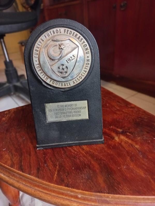 Çok nadir Türkiye Futbol Federasyonu (TFF) amblemini taşıyan, 2004 yılında Belçika'da düzenlenen "4. Avrupa U-19 Şampiyonası Birinci Eleme Turu" anısına verilmiş metal döküm plaket üzeri gümüş kaplama madalya plaket çap 6,5 cm, dün kitantik’te satışa sunulmuştur.