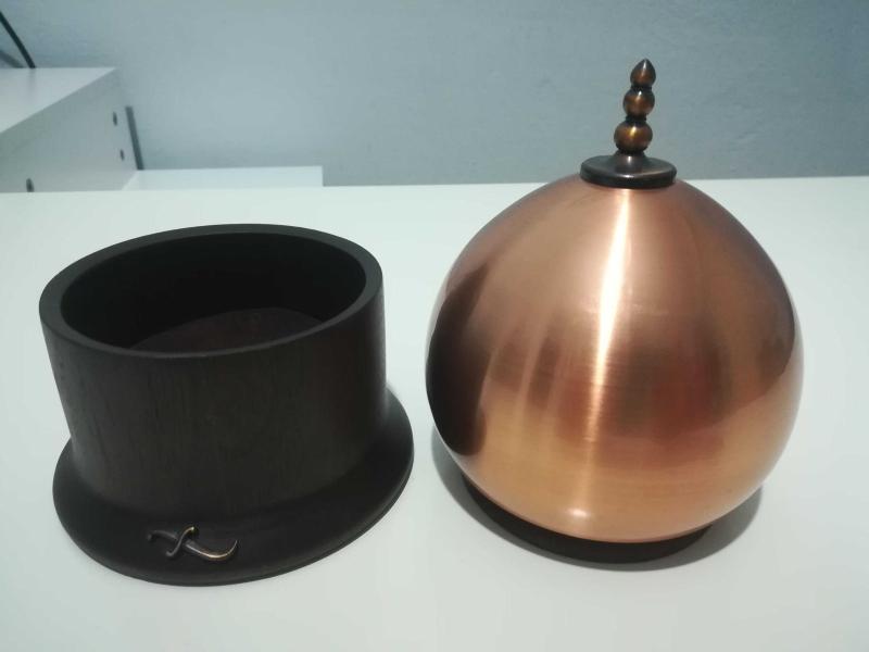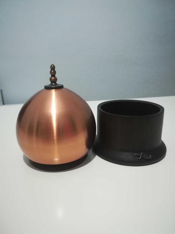 Üzeri pirinç kaplı, maun ağacından şık kutu. Takı kutusu olarak kullanılabileceği gibi masa üstü dekorasyon objesi olarakta kullanılabilir.