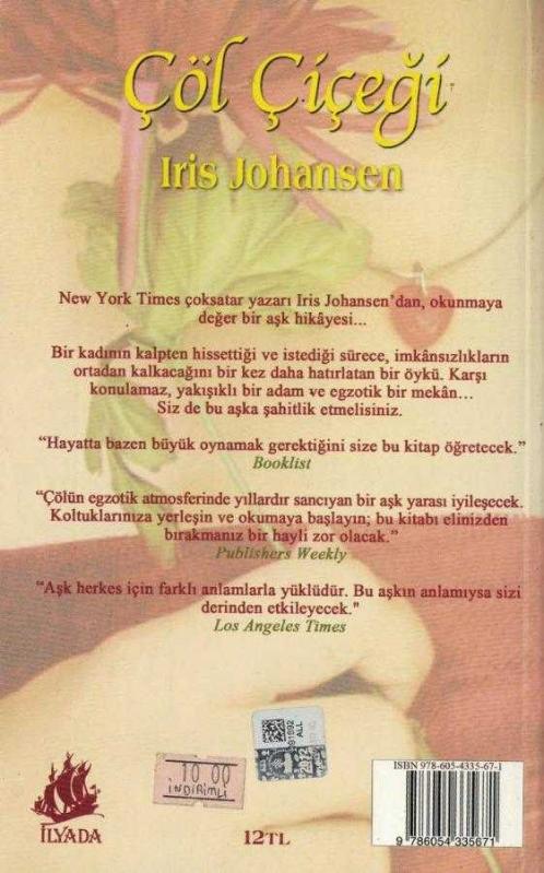 Çöl Çiçeği, İris Johansen tarafından kaleme alınmıştır. Kitap 2010 yılında İlyada tarafından yayınlanmıştır. 224 sayfadır. Çöl Çiçeği adlı eser Türkçe dilindedir.