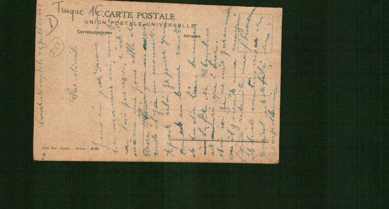 Arkası Fransızca yazılı, birbirini takip eden, postadan geçmemiş iki adet kartpostal. 15 Temmuz 192(?) tarihlidir. İtalya baskısı.