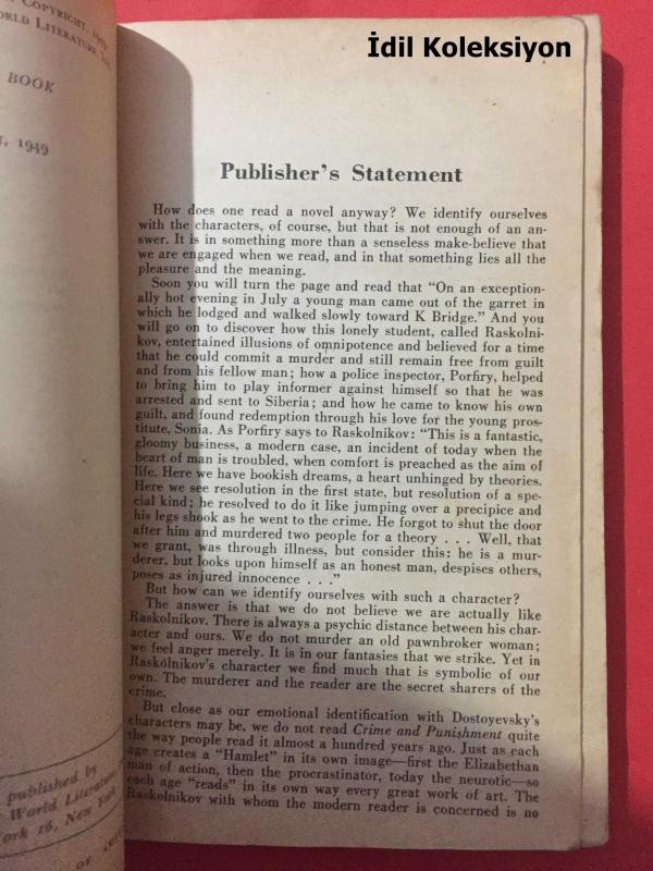 Crime and Punishment - Fyodor Dostoyevsky - Signet Book- İngilizce Kitap (Suç ve Ceza) (Yıpranmalar Mevcut), Fyodor Dostoyevsky tarafından kaleme alınmıştır. Eser - editörlüğünde hazırlanmıştır. Kitap 1949 yılında Signet Book tarafından [New York] - ISBN kodu ile yayınlanmıştır. Bu baskının çevirisi - tarafından yapılmıştır. 222 sayfadır. Sayfa bilgisi - olarak belirtilmiştir. Crime and Punishment - Fyodor Dostoyevsky - Signet Book- İngilizce Kitap (Suç ve Ceza) (Yıpranmalar Mevcut) adlı eser İngilizce dilindedir.
