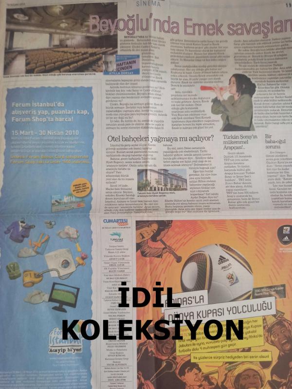 Cumartesi Sabah Haftalık Aktüalite Sinema Tiyatro Müzik ve Magazin Gazetesi - 10 Nisan 2010 - Beyoğlu'nda Emek savaşları - Otel bahçeleri yağmaya mı açılıyor? - Türkan Şoray'ın mükemmel arapçası! - Adidas Futbol Topu Reklamı - Aşırı et tüketimi iklimi bozuyor - Neslihan Tunç - Turkcell Reklamı fotoğraf ve haberi - Gazete tam değildir sadece 2 sayfası mevcuttur Yıpranma, sararmalar, kupon kesiği ve yırtılmalar zamana bağlı olarak görülebilir