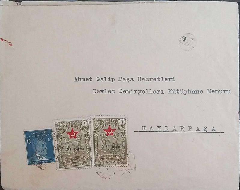 Cumhuriyet 1932 Ahmed Galip Paşa ZARF İstanbul'da kullanılmış Ata ve Kızılay sürsarjlı pullar ile Nadir.
