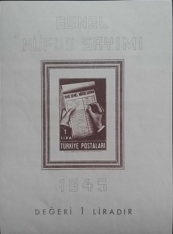 Cumhuriyet 1945 Nüfus Sayımı Blok NADİR,İsfila B3, gomu düzensiz.