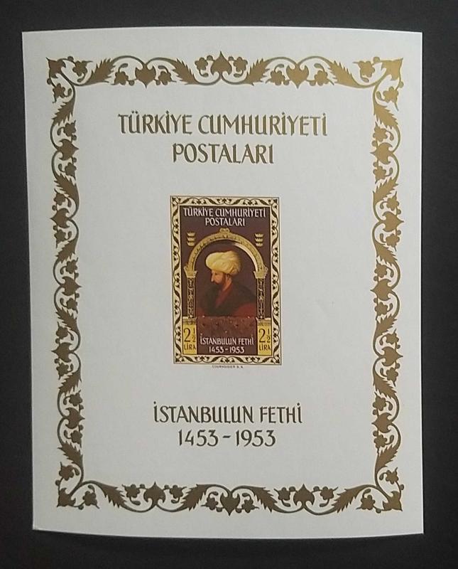 Cumhuriyet 1953 İstanbul'un Fethi'nin 500.Yıldönümü Serisi Fatih blok MNH,İsfila B5.Arka tarafta hafif sararma var fakat iyi durumda.