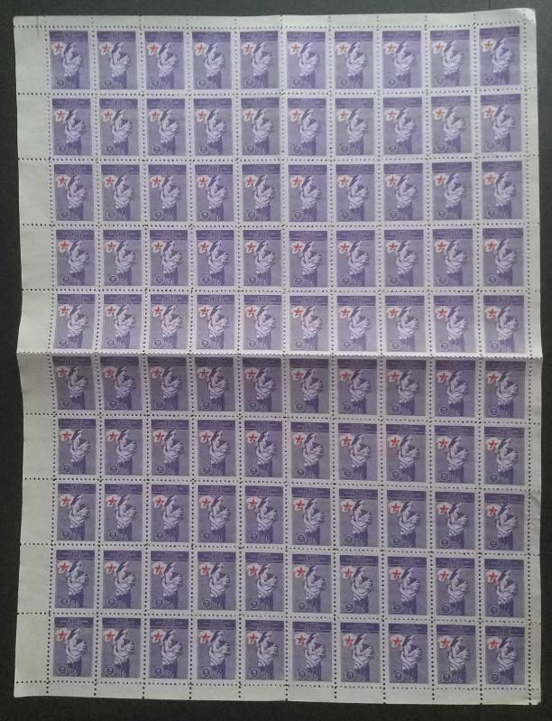 Cumhuriyet 1966 ÇEK Şefkat Pulları 3 KURUŞ PUL TAM TABAKA 100 LÜK,MNH,gomsuz.