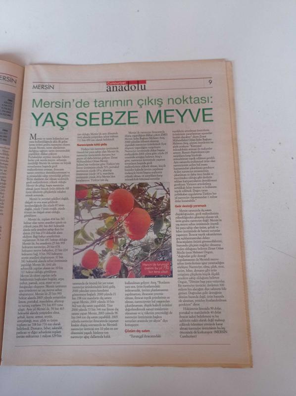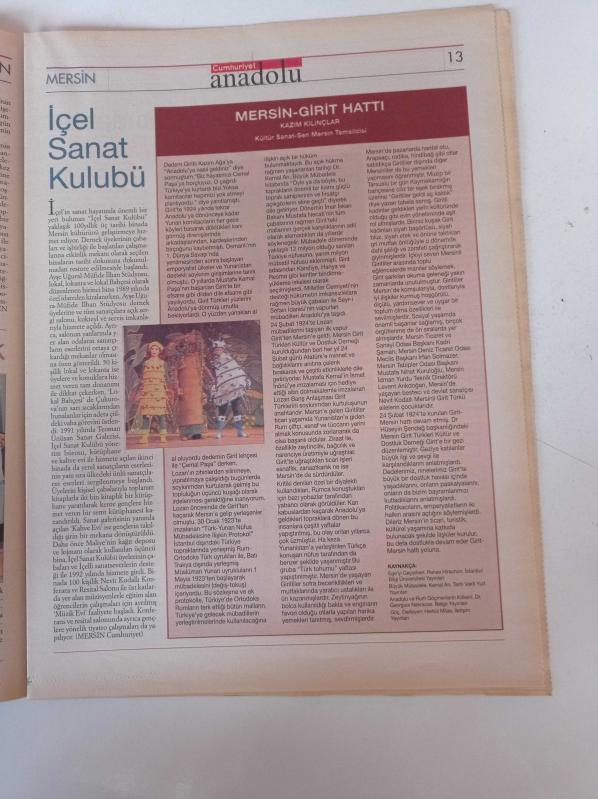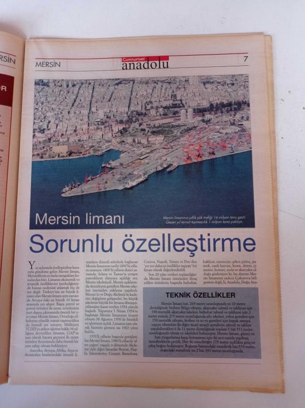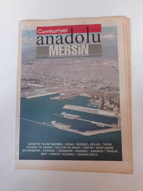 Sayfa Boyutu: 28*38cm Sayfa Sayısı:40 Cumhuriyet Anadolu Mersin Gazetesi Yıpranma, sararmalar, kupon kesiği ve yırtılmalar zamana bağlı olarak görülebilir