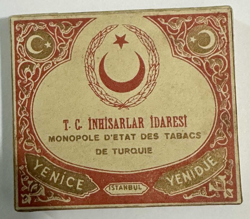 Cumhuriyet Başı Yenidje Yenice İstanbul TC İnhisarlar idaresi sigara pakedi dolu açılmamış ÇÇT başlıklı antika/koleksiyon objesi Türkiye menşe’lidir. 1920-1940 arası dönemine aittir.