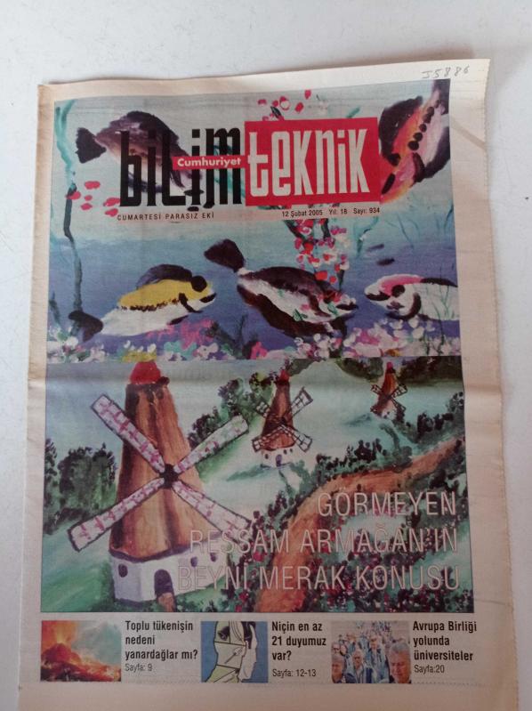 Cumhuriyet Bilim Teknik Gazetesi - 12 Şubat 2005 - Sayı 934 - Arılar Yalancıları Affetmiyor -Görmeyen Ressam Armağan'ın Beyni Merak Konusu - Toplu Tükenişin Nedeni Yanardağ Mı - Niçin En Az 21 Duyumuz Var - Avrupa Birliği Yolunda Üniversiteler adlı eser Türkçe dilindedir.