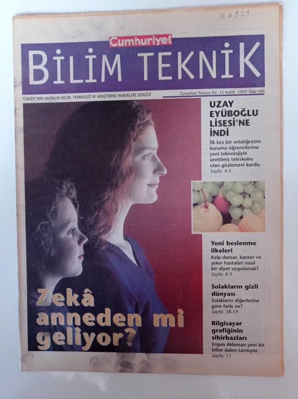 Cumhuriyet Bilim Teknik Gazetesi - 13 Aralık 1997 - Sayı 560 - Zeka Anneden Mi Geliyor - Uzay Eyüboğlu Lisesi'ne İndi - Yeni Beslenme İlkeleri - Sokakların Gizli Dünyası - Bilgisayar Grafiğinin Sihirbazları adlı eser Türkçe dilindedir.